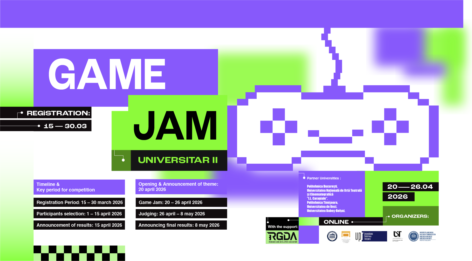 The Game Jam is aimed at people from the following Universities: